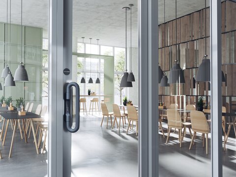 Schwere Türen lassen sich mit einem Drückergriff mühelos mit einer Hand öffnen. Zudem bieten die Drückergriffe barrierefreien Komfort aufgrund ihrer variablen Greifhöhe.