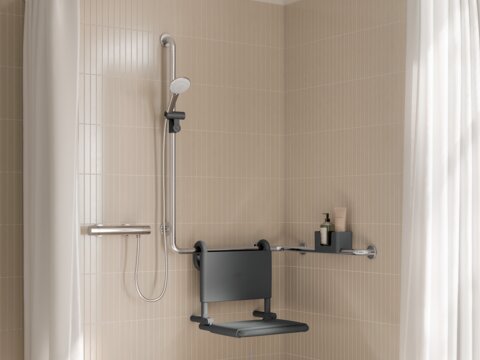 Serie 805 Classic bietet barrierefreie Lösungen für Dusch- und WC-Bereiche. So können Schüler*innen beispielsweise auch uneingeschränkt Sporthallen und Schwimmbäder nutzen. Die Produkte unterstützen und geben verlässlichen Halt bei eingeschränkter Kraft und Mobilität.