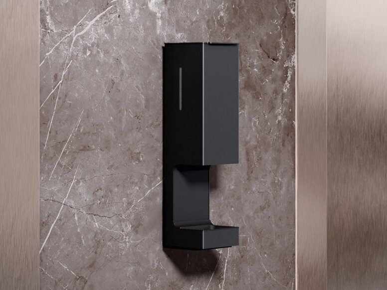 Dieses ermöglicht eine angenehme und gleichmäßige Verteilung auf der Haut. Mechanik und Tropfschale sind in den Säulenkörper integriert und nehmen sich zurück. Der Spender kann mobil dort platziert werden, wo er benötigt wird. Bei Bedarf kann er auch am jeweiligen Untergrund fest verschraubt werden. Die Sockelplatte ist in der jeweiligen Spenderfarbe gestaltet und bietet einen sicheren Stand und damit eine reibungslose Entnahme. Standmodelle sind auch ideal für temporäre Einsätze. So kann flexibel Ort und Einsatzbereich gewechselt werden. In der Gastronomie eignen sich besonders Theken und Empfangstresen, um den Spender gut und stilvoll zu platzieren. Auch kleine Tische im Garderobenbereich bieten Raum für die Händedesinfektion. Im Einzelhandel schützt die feste Anbringung des Standmodells auf Stehtischen und Aufstellern vor Diebstahl und ruft an präsenten Orten zur Hygiene auf.