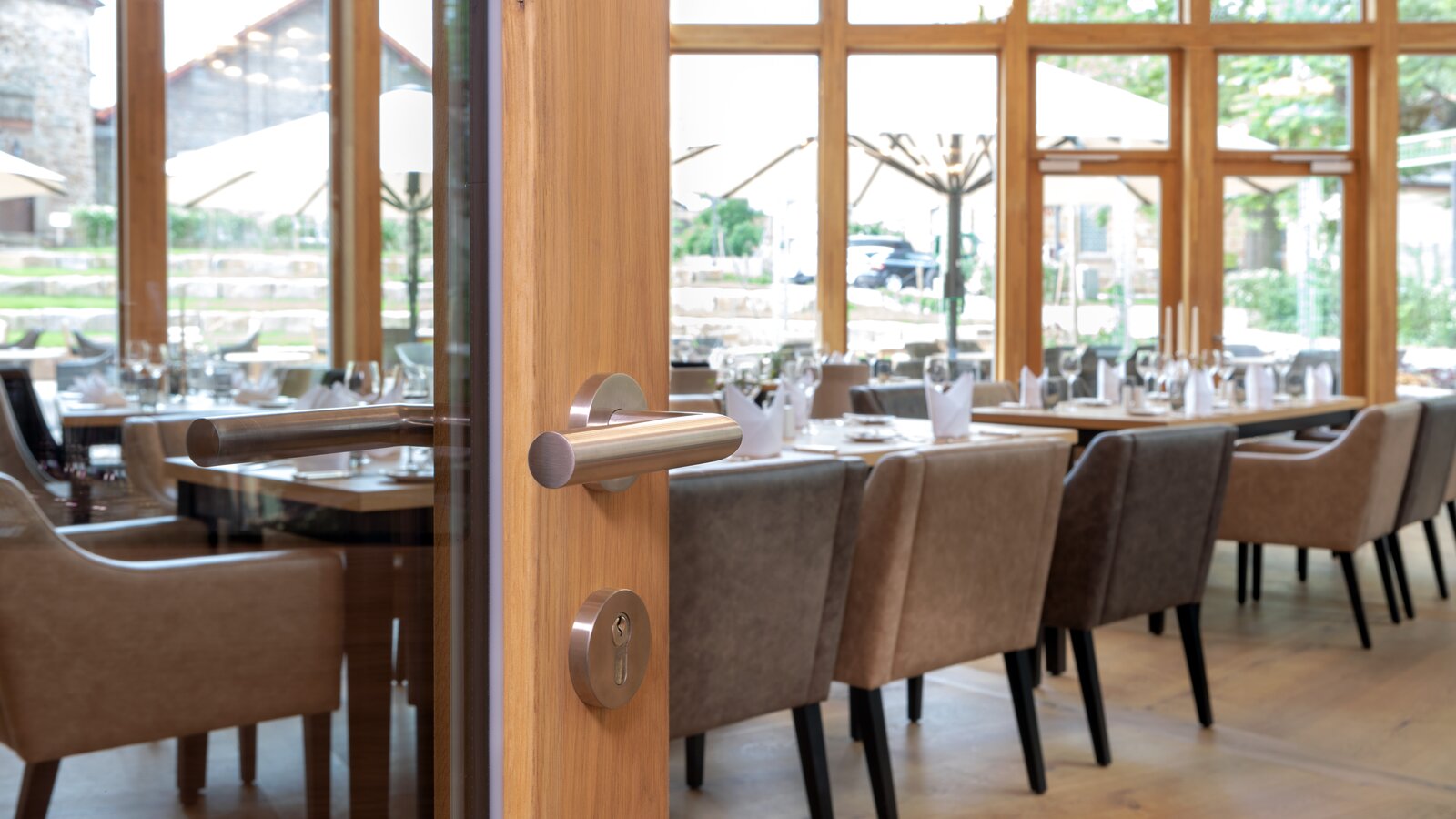 The beds in the guest rooms, for example, are made to measure by hand. The smart technology in them offers special comfort: light, room temperature and entertainment can be controlled conveniently from the bed. But comfort also means that there is a shower seat in the shower, for example, or a folding support handle next to the WC. With the purist accessories from System 162 from HEWI, the restrained design is taken up down to the smallest detail. Each room is individually designed so that the furnishings are perfectly matched to the personal requirements of the guest.