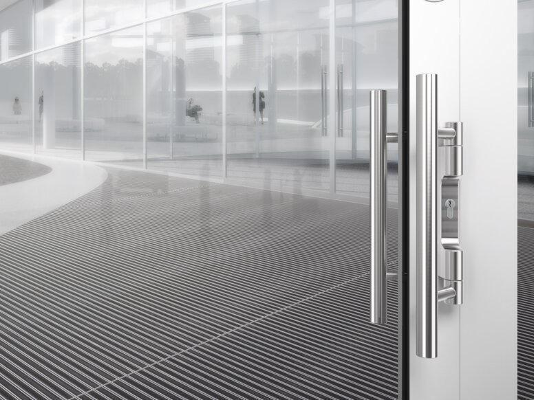 Especially for hospitals and nursing wards, lever handles with extended lever are a practical solution. Due to the longer lever, less force is required to open the door, which accommodates physically impaired persons. Even the staff profits from this type of lever handles, since they can easily be operated with the elbow. Similar benefits are offered by lever handles in U-shape. The touch-free operation also ensures an increased level of hygiene. U-shaped lever handles prevent unintentional catching of clothes and reduces the risk of injuries. Moreover, the rounded, ergonomic shape permits easy operation.