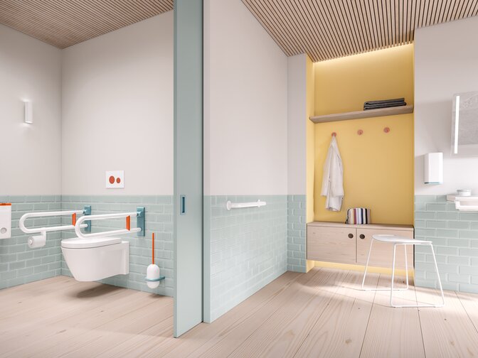 Des distributeurs de savon et d’essuie-mains en papier aux poubelles de différentes tailles, en passant par les combinaisons de produits d’hygiène, HEWI propose un assortiment cohérent et fonctionnel qui allie une qualité durable à des exigences élevées en matière de design.