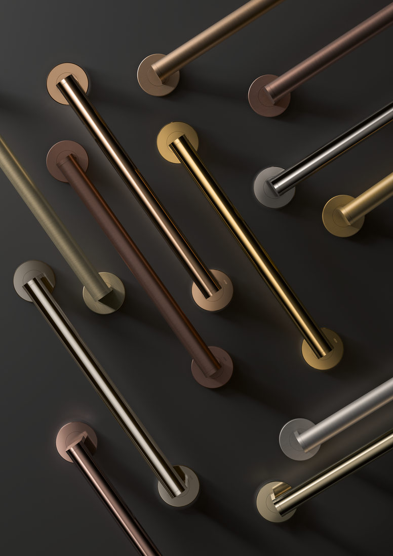 Een bijzonder hoogtepunt zijn de PVD-coatings, die ook in 2025 steeds belangrijker worden. De oppervlakken zorgen niet alleen voor een buitengewone look, maar scoren ook punten voor hun duurzaamheid en weerstand. Dankzij hun krasbestendigheid behouden ze hun stralende elegantie, zelfs na vele jaren. Glanzende kleuren zoals glanzend messing, geborsteld nikkel en zwart-chroom glanzend, die tijdloze elegantie uitstralen, zijn bijzonder populair in de badkamertrends 2025. Speciale kleuren zoals geborsteld koper of brons glanzend zorgen ook voor speciale accenten die harmonieus passen in moderne of klassieke badkamerontwerpen.