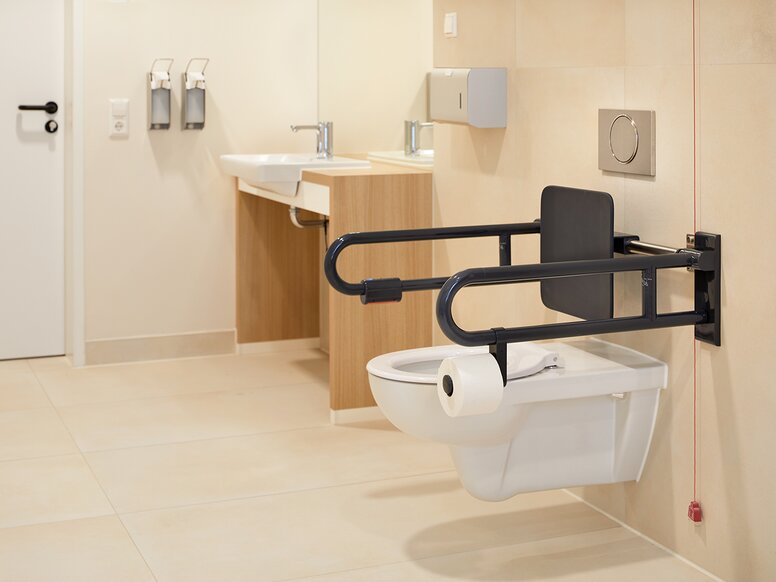 De esthetische en hoogwaardige sanitaire producten van HEWI uit de barrièrevrije 477/801 serie en hetSysteem 900 bieden gebruikers maximaal comfort en onafhankelijkheid in de badkamer. Dat is een bijzonder belangrijk aspect in de wereld van vandaag, ook om het zorgpersoneel te ontlasten. De componenten uit de 477/801 serie zijn gemaakt van effen polyamide en zijn bestand tegen wondbehandelings- en reinigingsmiddelen. Ze zijn zelfs bestand tegen continu zeer zwaar gebruik evenals jarenlange belasting. De tot in het kleinste detail doordachte badkameraccessoires, zoals de douchegordijnstang en de douchestang, de toiletrolhouder en de toiletborstelset, evenals de polyamide afvalemmer met een matte afwerking zorgen voor elegante accenten in moderne badkamers. De combinatie van rugsteun en inklapbare steungreep, die precies is afgestemd op de behoeften van mensen met motorische beperkingen, biedt extra veiligheid. Door hun niet-poreus en gemakkelijk schoon te maken oppervlak voldoen de polyamide oplossingen aan de strenge hygiënevoorschriften.