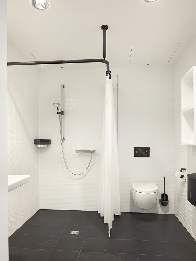 Met HEWI konden de architecten hun architectuurconcept realiseren die genezing voor lichaam, geest en ziel tot in het kleinste detail bevordert en tegelijkertijd volledig voldoet aan de hoge eisen op het gebied van hygiëne, veiligheid en ondersteuning voor patiënten en verplegend personeel.
