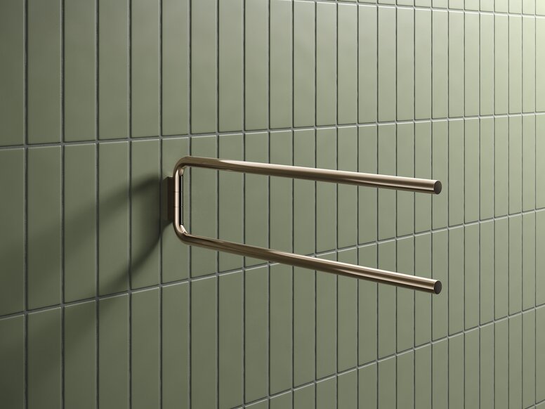 De handdoekhouder van de Serie 480 overtuigt met twee boven elkaar geplaatste, verfijnde steunarmen in het kenmerkende design met ronde buizen. Het minimalistische ontwerp zorgt voor een heldere, elegante uitstraling en biedt tegelijkertijd praktische functionaliteit.