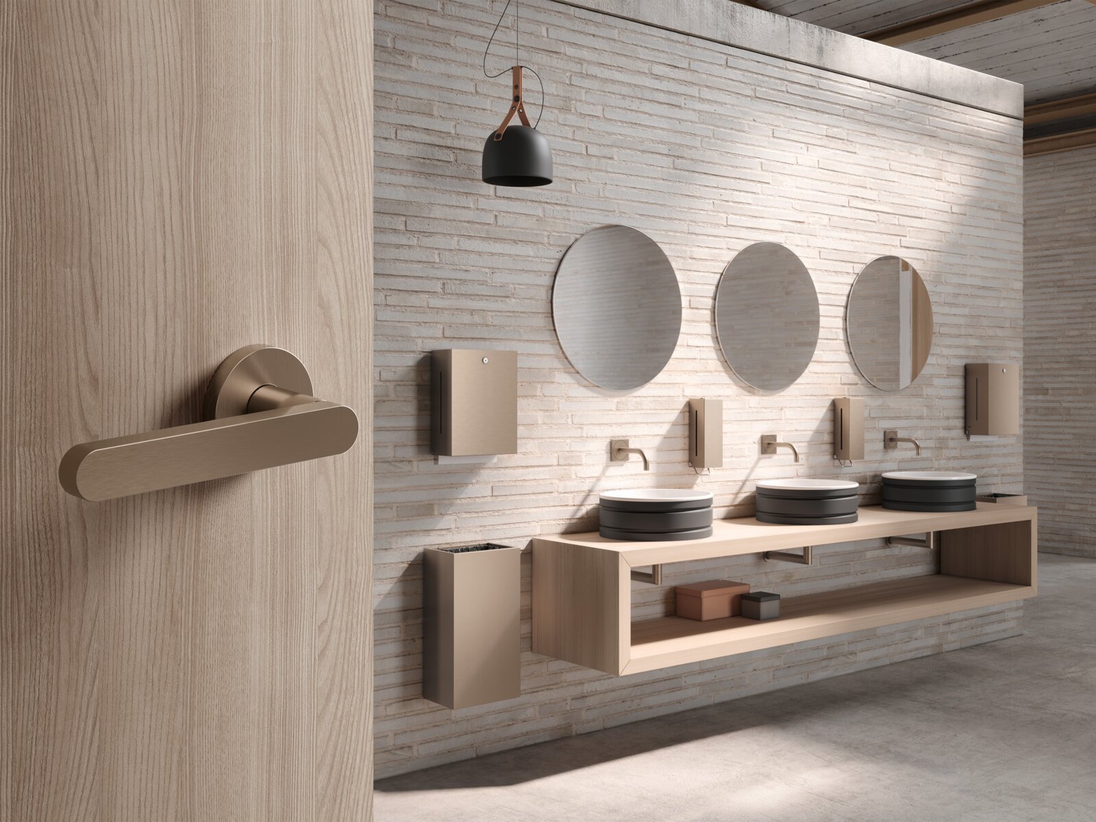 Daarnaast is ook het sanitaire systeem S 900 beschikbaar in PVD, voor een harmonieus totaalbeeld van de deur tot in de badkamer.